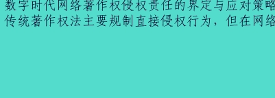 随着数字技术的飞速发展,网络空间已成为文化传播与知识共享的重要平台,但与此同时,侵犯著作权的行为也呈现出隐蔽化、规模化趋势。网络著作权侵权责任研究不仅关乎创作者的合法权益,更直接影响互联网生态的健康发展。在现行法律框架下,如何界定网络服务提供者的责任边界、平衡信息自由与版权保护,是司法实践与理论研究的核心议题。